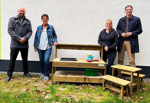 EAM unterstützt Kindergarten in Haunetal mit Matschtisch und Sitzgruppe